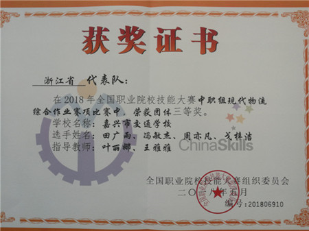 嘉興市交通學校物流專業學生在全國技能大賽中喜獲三等獎