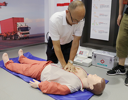 大家首先來到應急救護和心肺復蘇的體驗區,聽取了講解員耐心細致地講解和示范后,參觀人員親自操作,輪流嘗試為患者心肺復蘇急救,掌握了心肺復蘇用力技巧和急救方法,同時也認識到掌握正確急救知識的重要性。接下來,大家分別通過互動多媒體、VR互動體驗、聲光電特效以及互動實操演練等現代高科技手段,親身觀摩體驗了危險駕駛體驗、安全帽撞擊體驗、切割傷害體驗、高樓火災逃生等各種突發安全生產狀況,提高自我防范意識和能力。